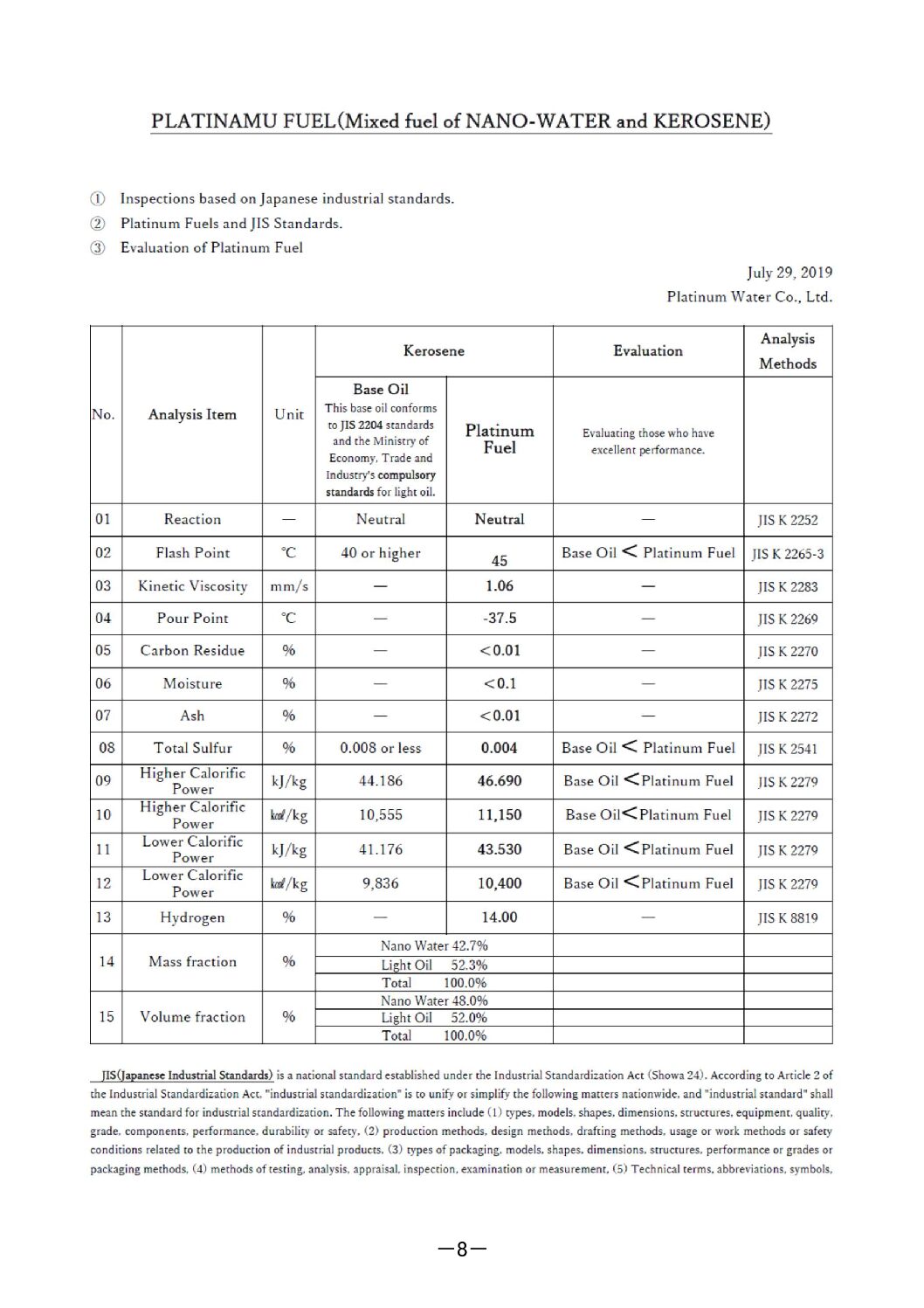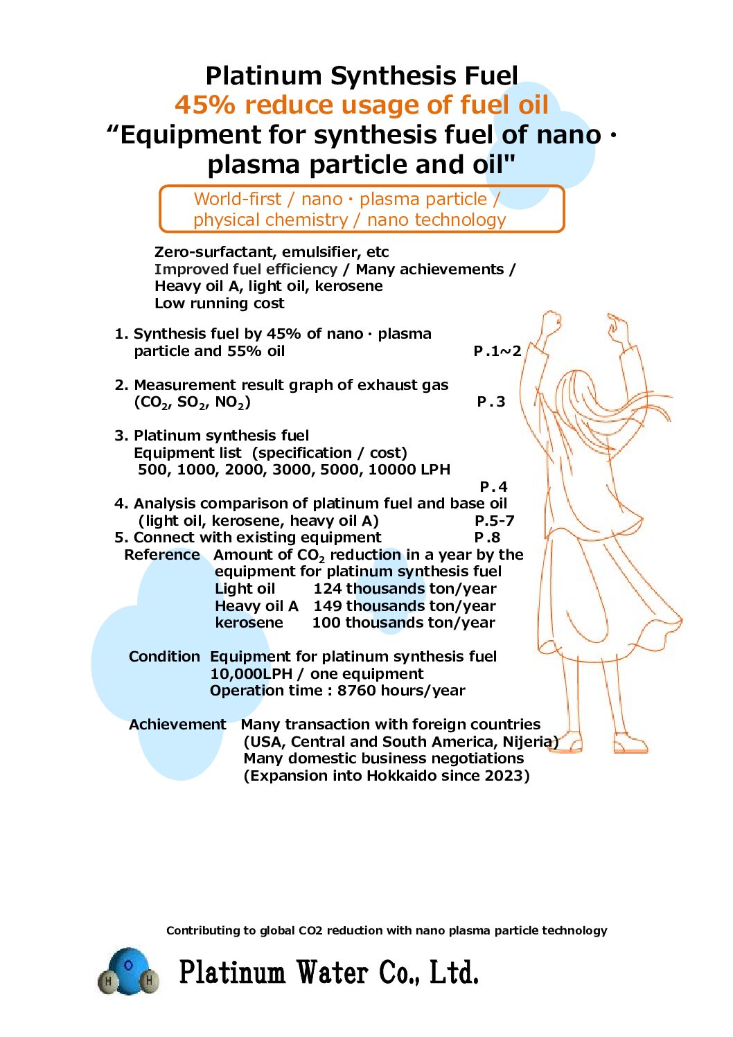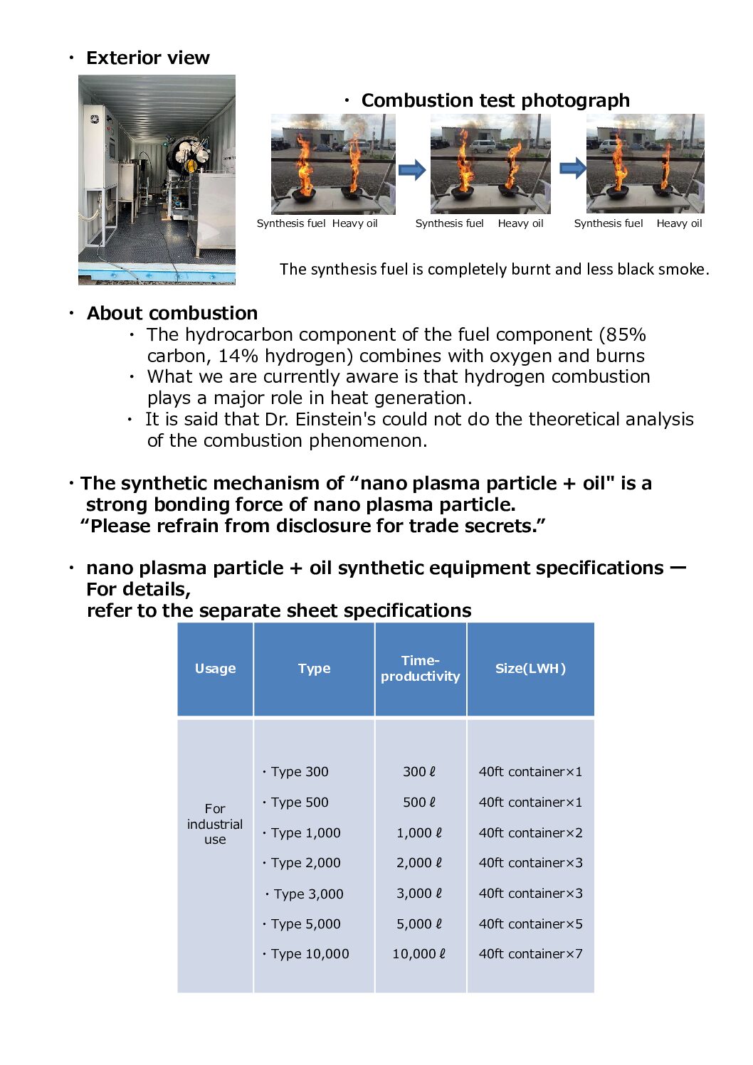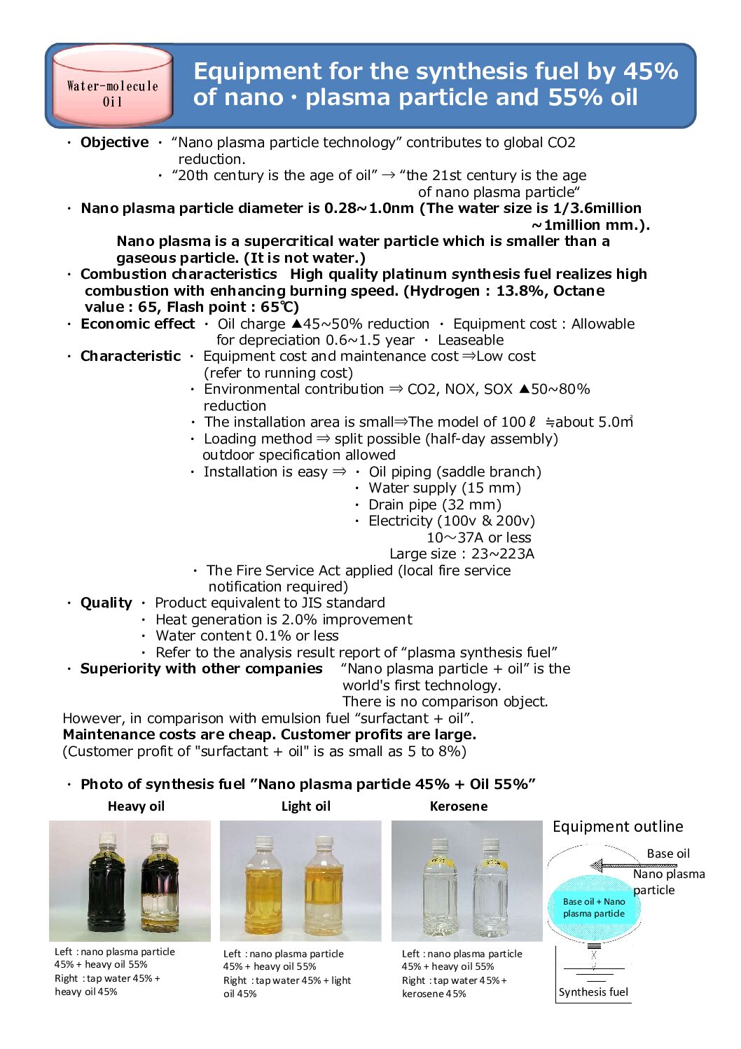 Synthesis fuel of “nano・plasma particle + oil” that reduces usage of fuel by 45%, and CO2 is also 57%