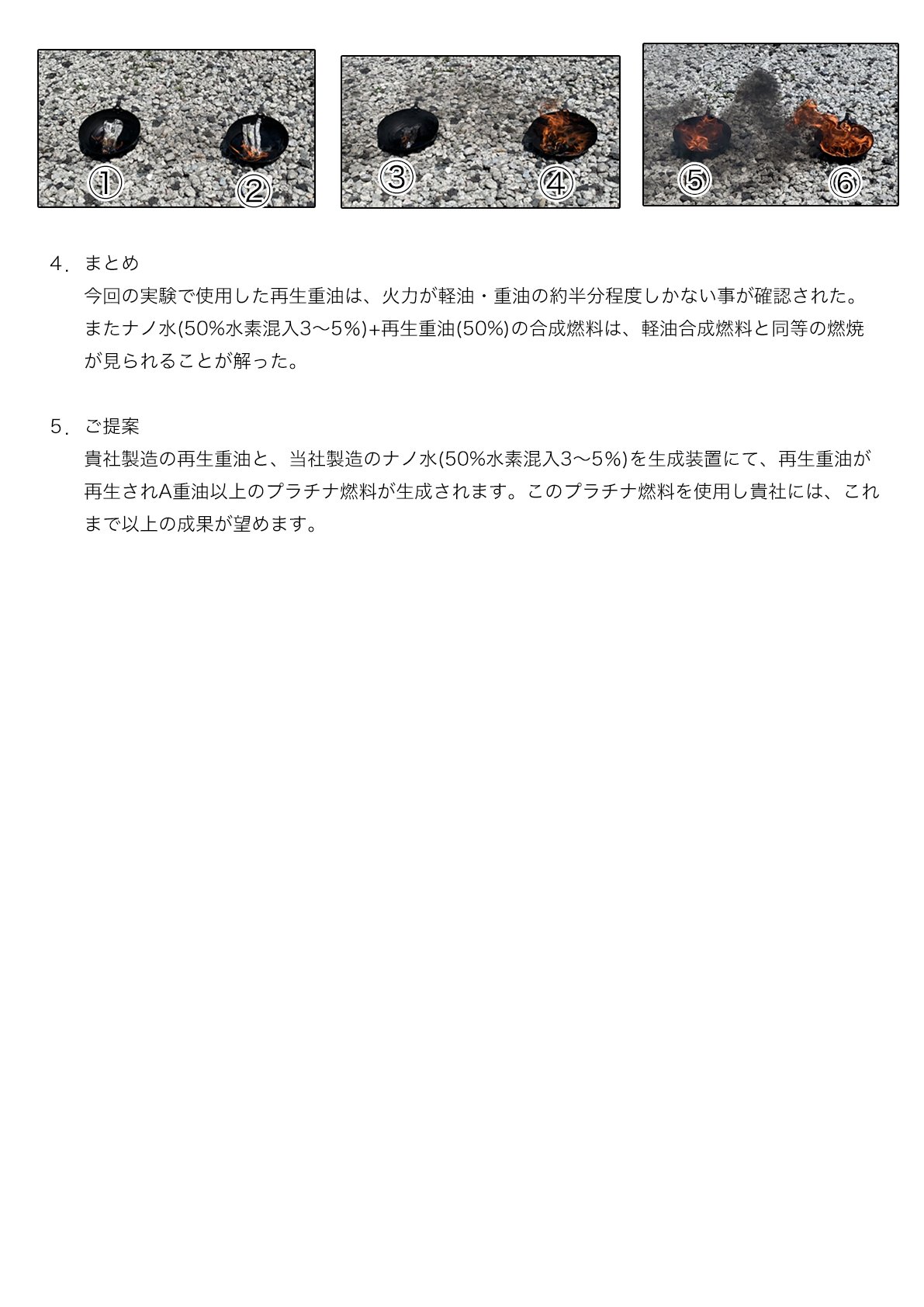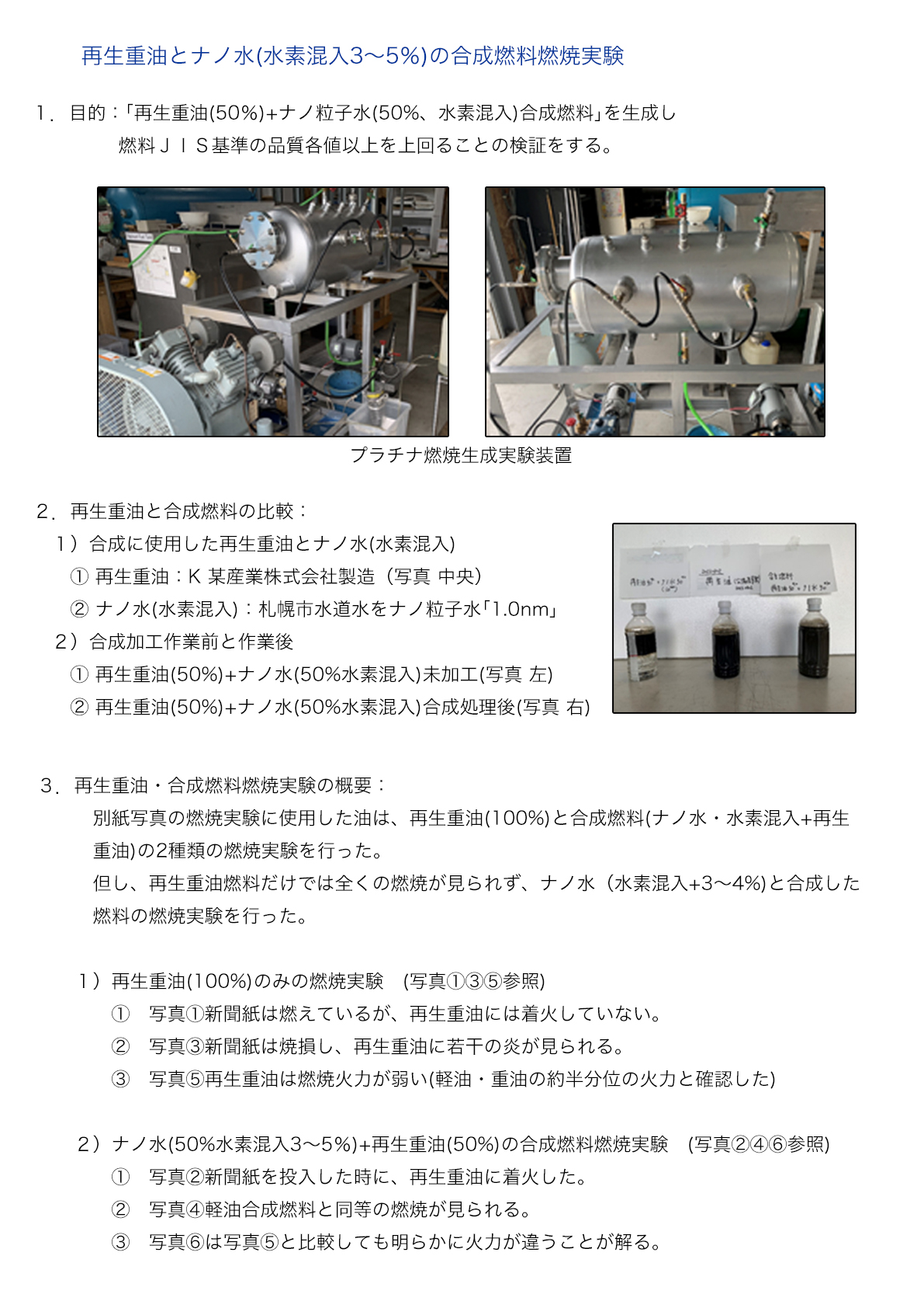 再生重油とナノ水(水素混入3~5%)の合成燃料燃焼実験
